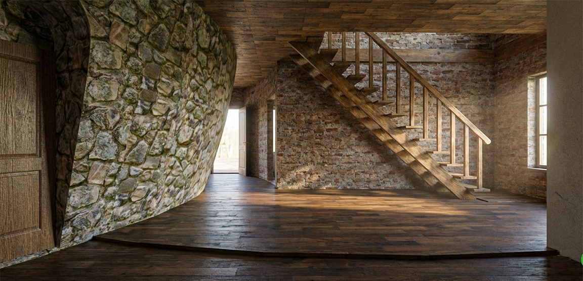 室内も外観のきのこを感じられる局面の石壁(イメージ画像 GA-PLAN作成)