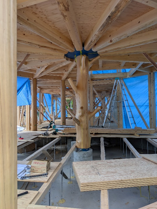 中心柱400φの枝付きの桧材で。