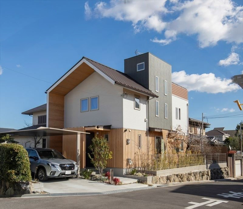 高台の見晴らしを満喫できる総桧作りの家夫婦がそれぞれの時間を充実させられる工夫が各所に有ります。